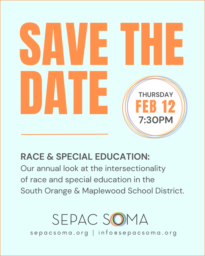 Save the date for our annual look at the intersectionality of race and special education at SOMSD with a panel of special guests. More info soon!