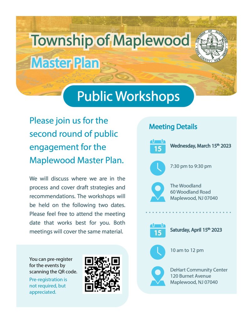The Township of Maplewood is in the process of preparing a new Master Plan. These plans, which are required by the state to be updated at least every 10 years, are primarily focused on the physical realm and have traditionally covered issues such as zoning, transportation, and parks. However, increasingly, master plans look at “softer” issues such as public health (especially in the wake of the pandemic), social connection, and equity.