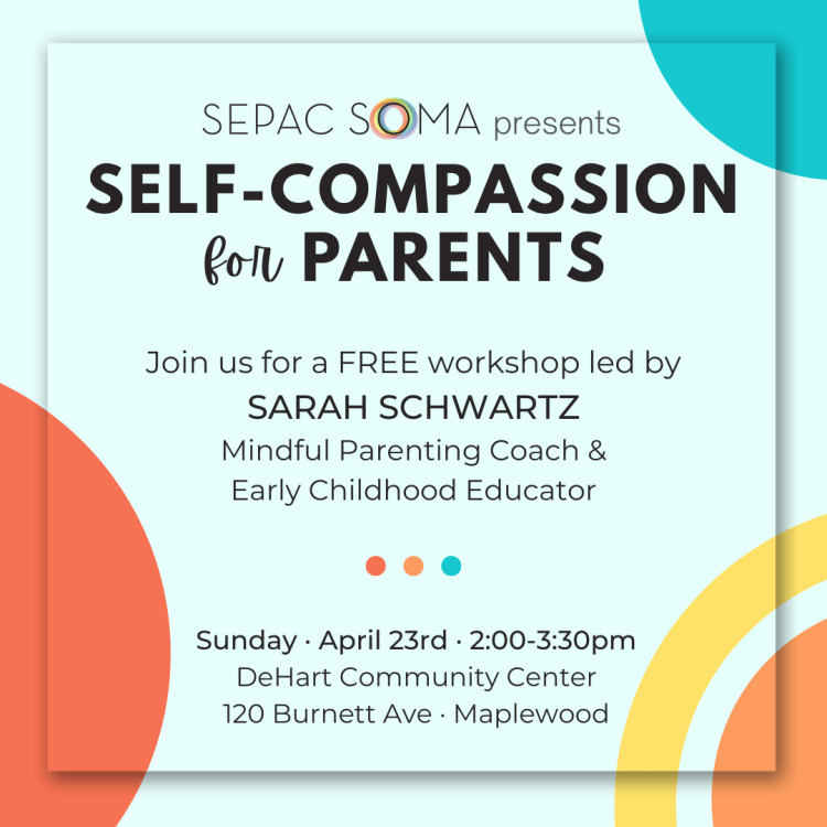 SELF-COMPASSION FOR PARENTS: The everyday life of a parent is full of high expectations, isn’t it? Often, we put ourselves last, so we’re excited to share an opportunity to set aside those expectations and give yourself the gifts of time and grace at our free SEPAC SOMA Parent Workshop, where we’ll connect and learn about tools, support, and practices to cultivate self-compassion with Mindful Parenting Coach Sarah Schwartz. ![]()