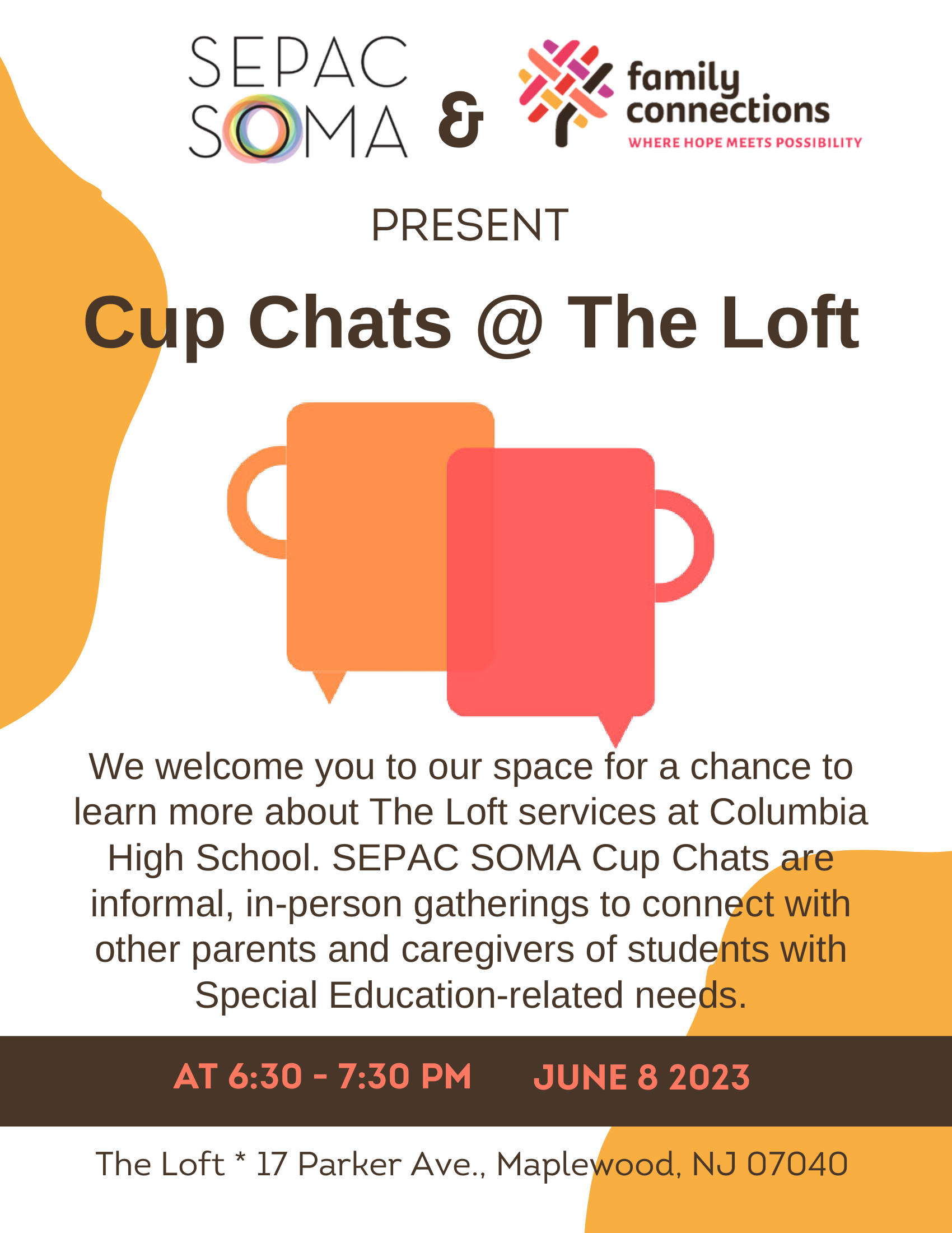 Do you have a rising 9th-12th grader with an IEP or 504? We hope you’ll join us for a special high school-focused gathering! Just like a regular Cup Chat, we’ll chat, we’ll share, we’ll connect. Plus, we’ll learn more about the activities and support systems available through The Loft @ CHS. Don’t miss this chance to learn more about an incredible in-school resource for your teen!