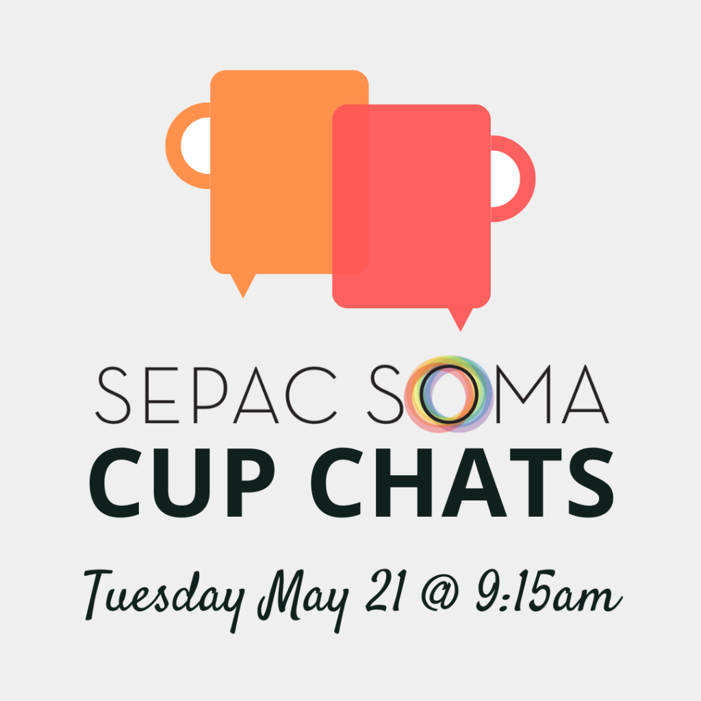 Our informal, in-person gatherings are a great way to connect with other parents and caregivers of kids with Special Education-related needs in our district. Spring is in the air … bring a folding chair and a cup of coffee to our open-air meeting!