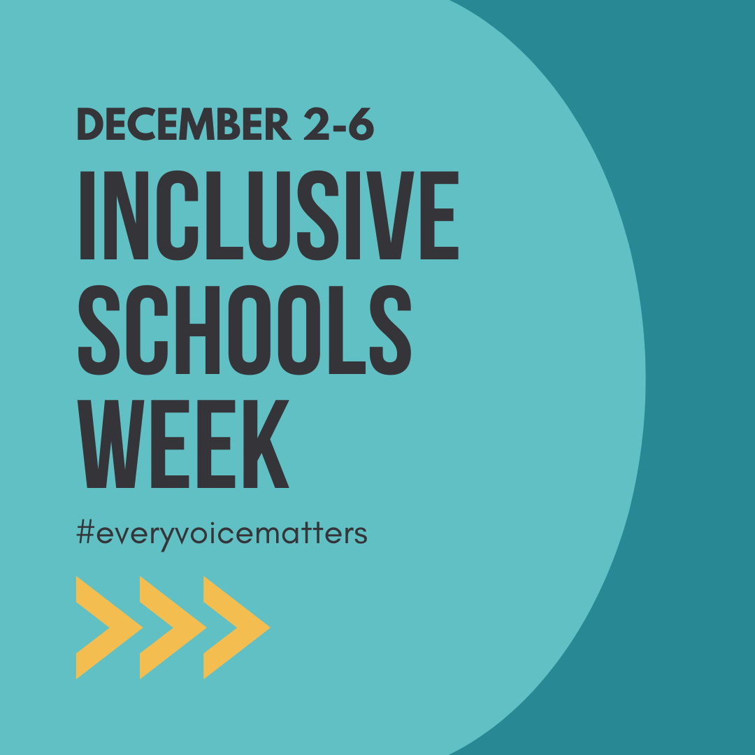 Inclusive Schools Week is happening December 2-6 at our school district and throughout the country. The purpose of the week is to actively engage our students and school-wide community to be conscious of what it means to be inclusive, the importance of respecting others, and building empathy for one another.
