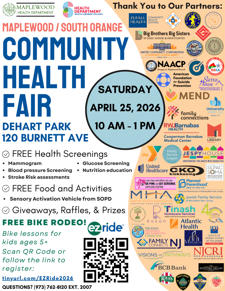 We’ll be at the Maplewood/South Orange Community Health Fair this Saturday in DeHart Park. (