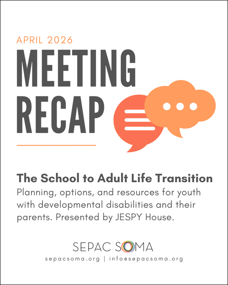 JESPY House, a local provider based in South Orange, joined us in April to share info about planning, options, and resources for youth with developmental disabilities and their parents. Learn about the transition to adult life after high school or an 18-21 program. Housing, employment, recreational services … what’s next?