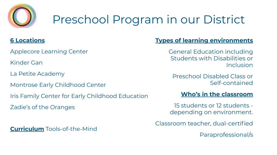 - Also, we have two wonderful and knowledgeable special education liaisons for the Preschool Program: